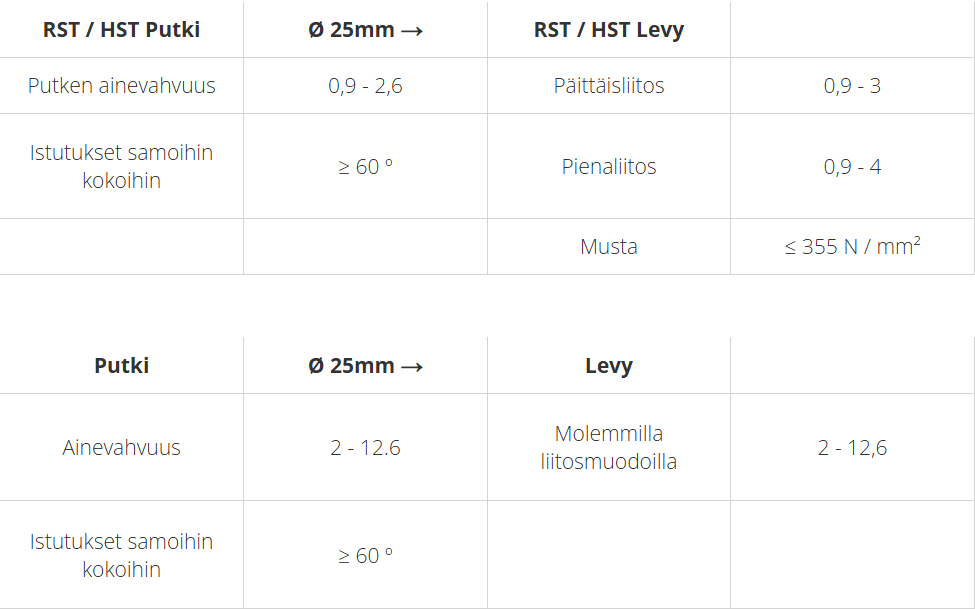 Meiltä löytyy alla olevan mukaiset WPS hitsausohjeet TIG-hitsaukseen:
